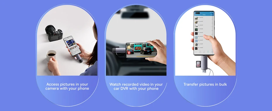 Access pictures in your camera with your phone,Transfer pictures in bulk,Watch recorded video in your car DVR with your phone