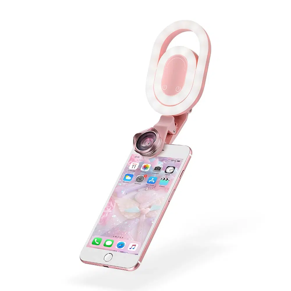 1. Double circles LED source+ 180 degree rotation angle– Produces enough light to capture beautiful selfies at night.