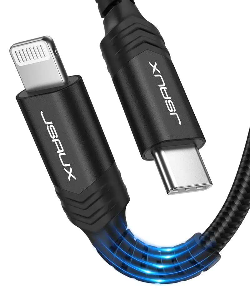 • Power Delivery Fast Charging: Charge your iPhone 12 from 0% to 50% in just 30 mins. JSAUX USB-C to Lightning Cable supports fast charging for iPhone 12, 12 Mini, 12 Pro, 12 Pro Max, 11, 11 Pro, 11 Pro Max, SE, X, XS, XR, XS Max, 8, 8 Plus, and other later models when using your USB-C Power Delivery Charger (including Apple 18W, 20W, 29W, 30W, 61W, or 87W USB-C Power Adapter).