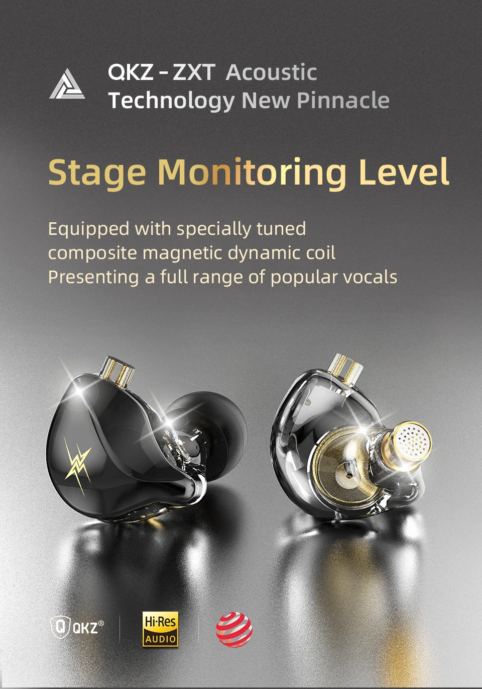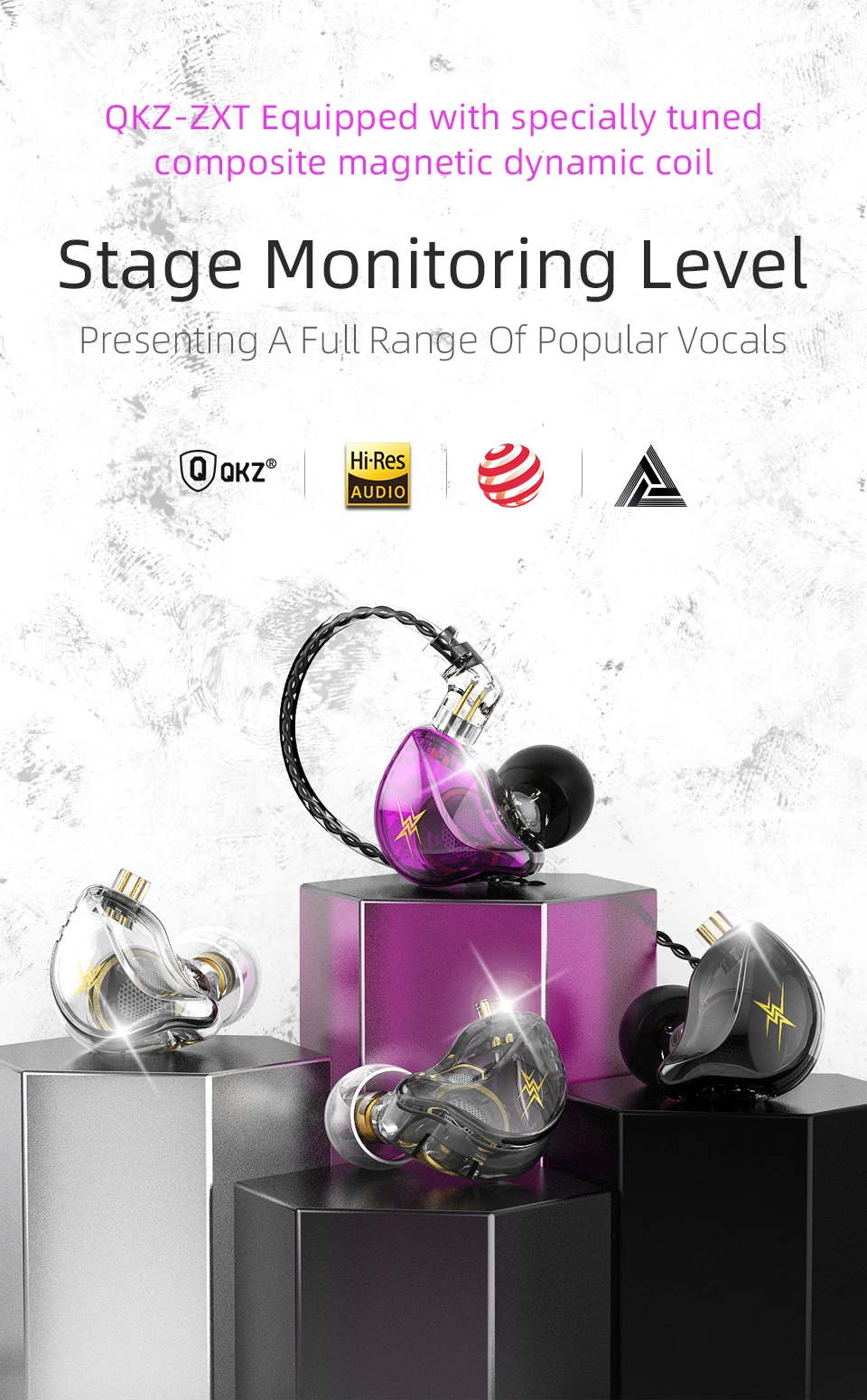 QKZ ZXT Wired Earphones 1 Dynamic HiFi Bass Earbuds in Ear Monitor Headphones Sport Noise Cancelling Headset with Microphone 2 Pin Detachable Cable