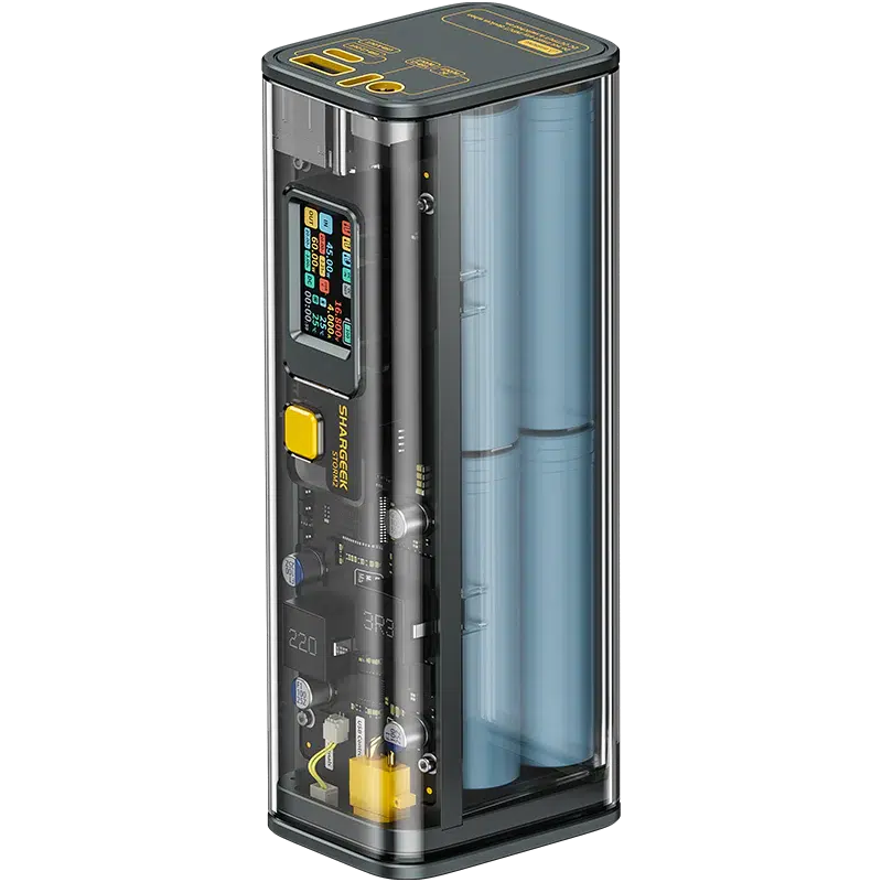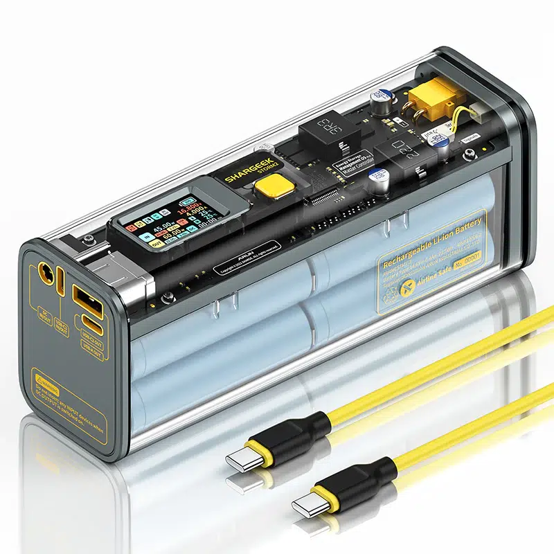 100W PD In / Out | 25600 mAh / 93.5Wh | Airline Safe 3.3-25.2V Adjustable DC Output | 2×USB-C + 1×USB-A + DC5525 Compact Battery Bank With See-Through Design