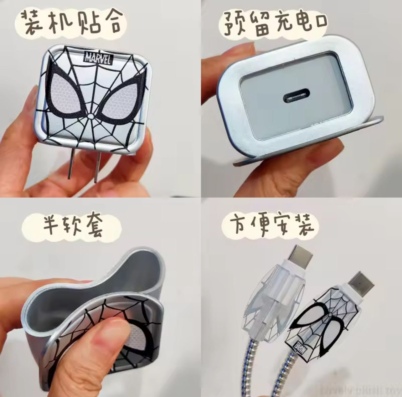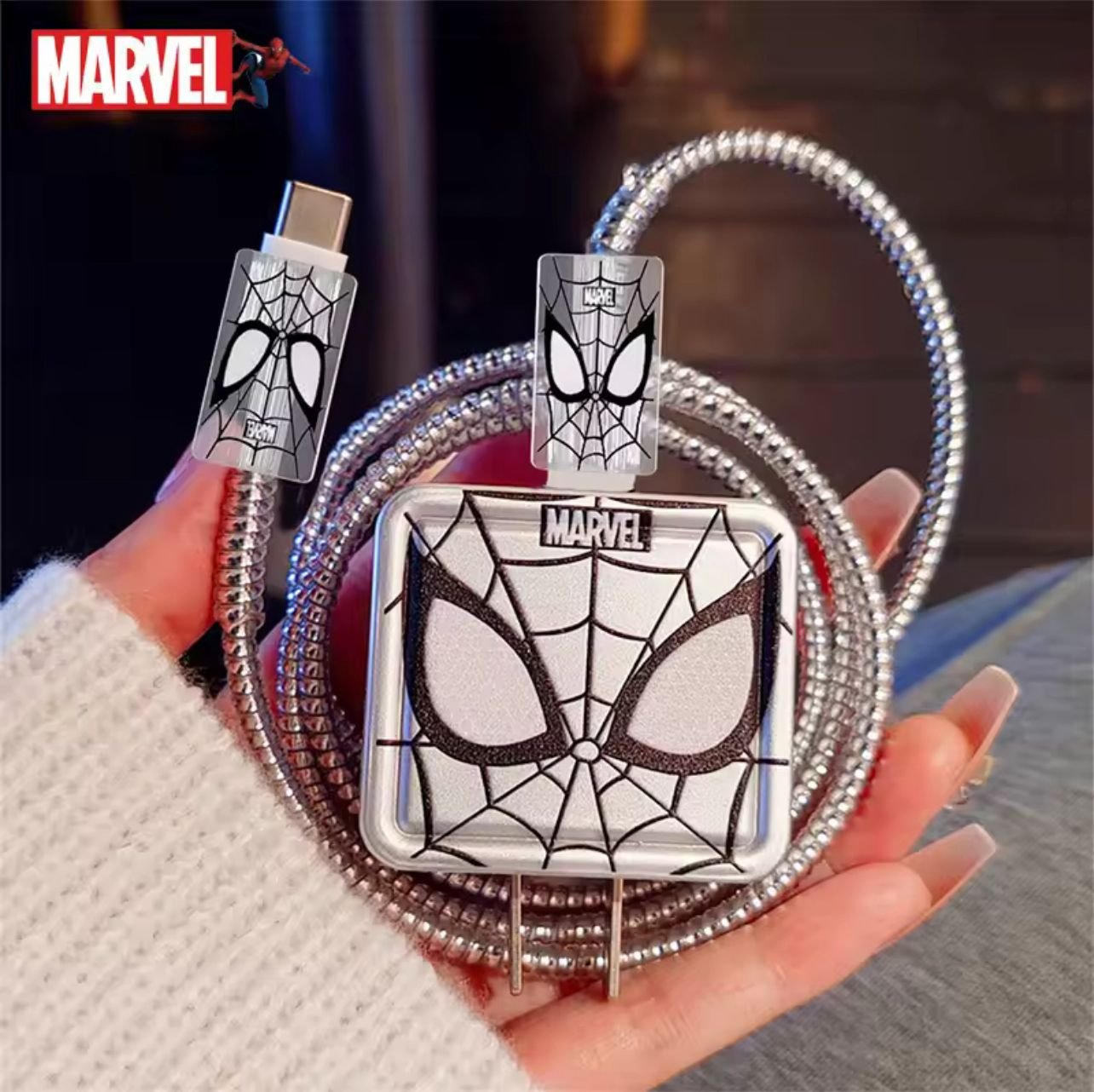 Spider Marvel Edition Charger Cover With Cable Protector For US-2Pin