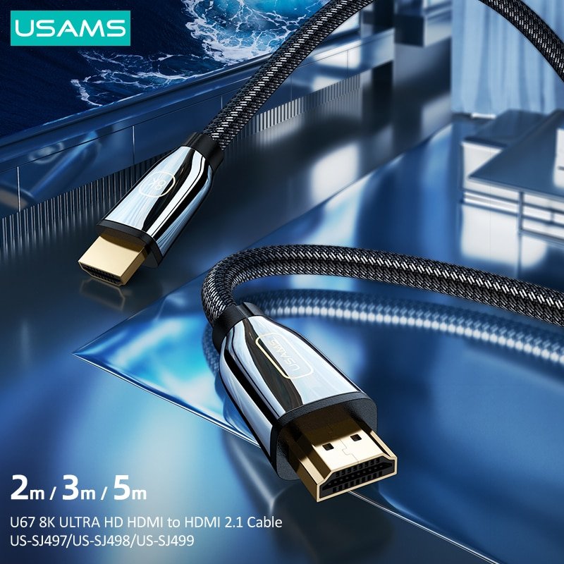 USAMS HD 8K HDMI 2.1 48Gbps K/60Hz 4K/120Hz Digital Cable for Laptop TV Box Display PS5 PS4 Gaming Splitter