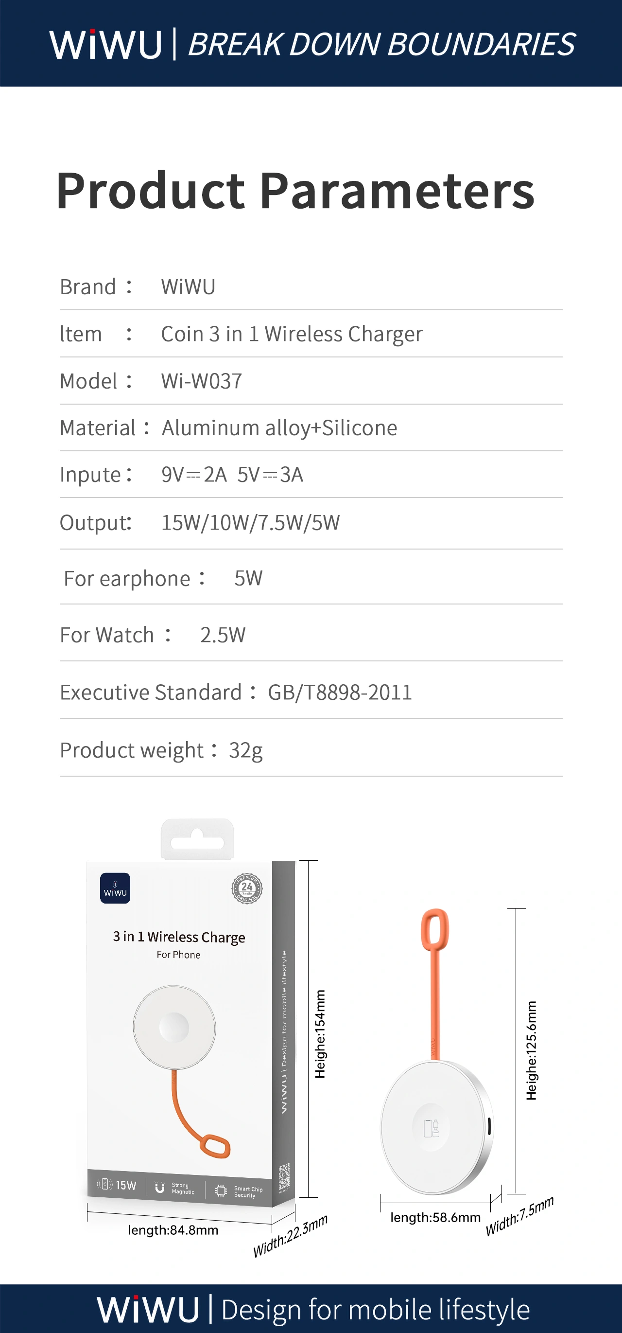 Compatible mode: mobile phones, watches, and headphones can all be charged