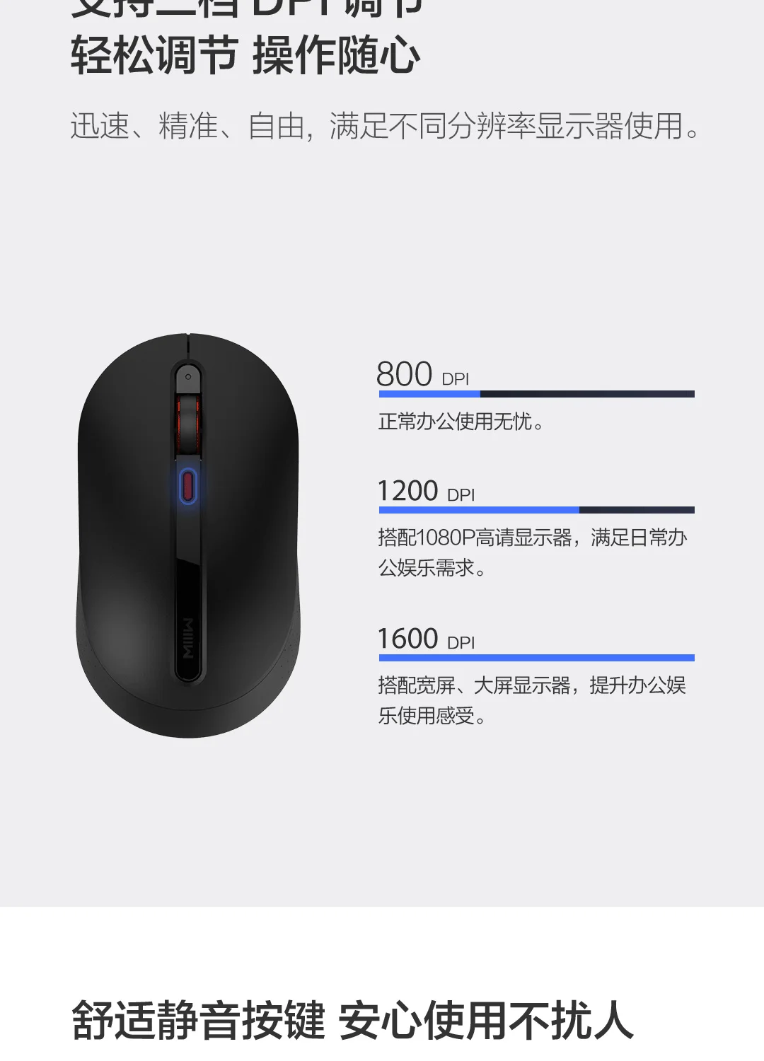 Supports 3-speed DPI Adjustment: 800DPI, 1200DPI, 1600DPI for more fast and to meet different resolution displays for your needs.