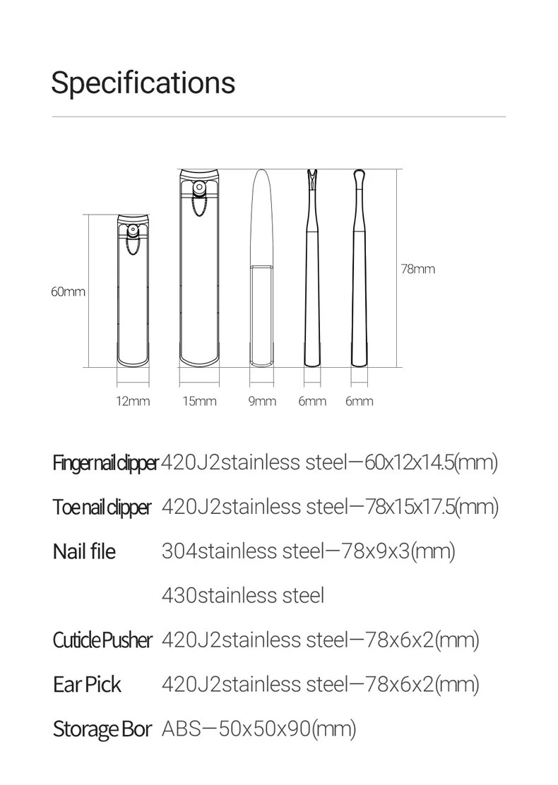 Xiaomi Nextool Nail Clipper Set Nail Stainless Steel Dead Skin Push Ear Scoop Nail File with Storage Box Manicure Beauty Tools